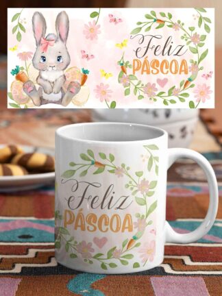 Caneca Feliz Páscoa coelho Rosa/Azul