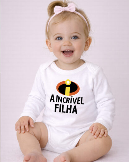 Body de manga comprida para bebé, confortável e suave ao toque, perfeito para celebrar um momento muito especial: O Dia da Mãe. Com a frase cheia de amor e carinho “O Incrível Filha”, baseado no filme “Os Incríveis”, este body é ideal para tornar esta data ainda mais memorável. Perfeito para usar na celebração do Dia da Mãe em sessões de fotos ou simplesmente para guardar como recordação deste primeiro momento tão especial.