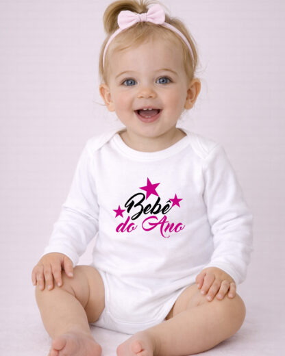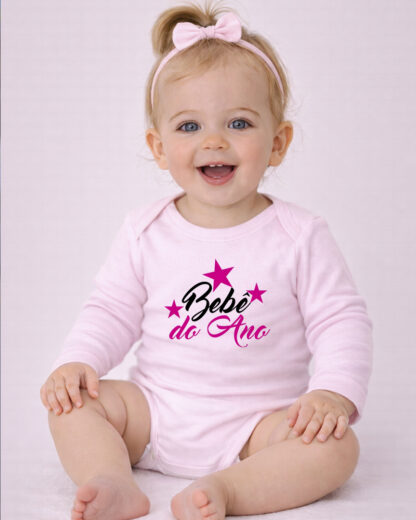 Body de manga comprida para bebé, confortável e suave ao toque, perfeito para celebrar um momento muito especial: O Dia da Mãe. Com a frase cheia de amor e carinho “Bebé do Ano menina”, este body é ideal para tornar esta data ainda mais memorável. Perfeito para usar na celebração do Dia da Mãe em sessões de fotos ou simplesmente para guardar como recordação deste primeiro momento tão especial.