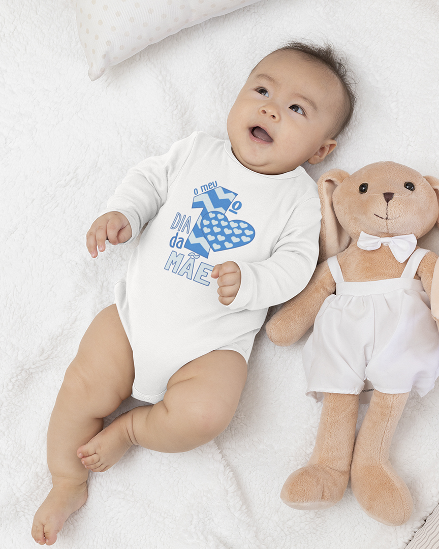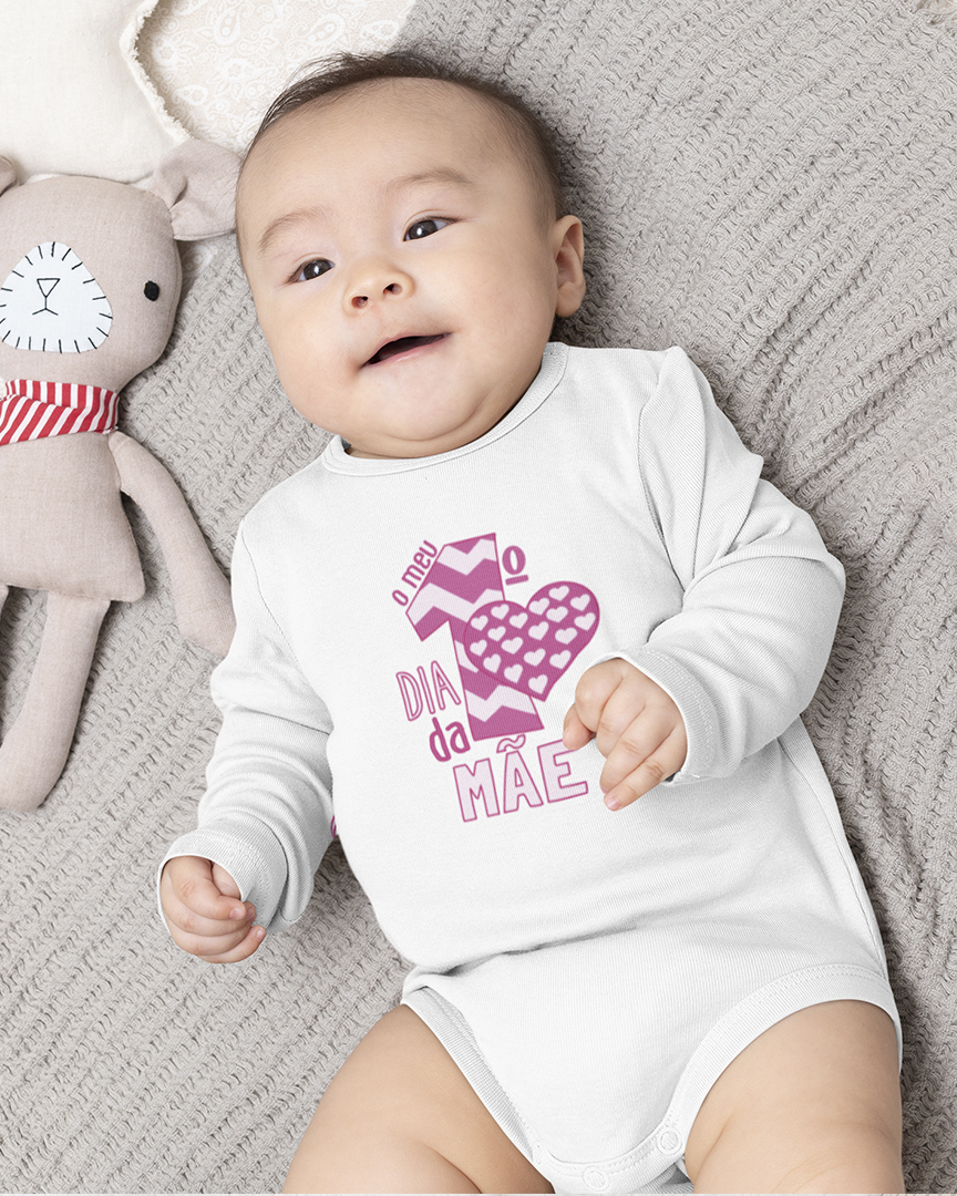 Body de manga comprida para bebé, confortável e suave ao toque, perfeito para celebrar um momento muito especial: O Primeiro Dia da Mãe. Com a frase cheia de amor e carinho “O meu 1º Dia da Mãe”, este body é ideal para tornar esta data ainda mais memorável. Perfeito para usar na celebração do Dia da Mãe em sessões de fotos ou simplesmente para guardar como recordação deste primeiro momento tão especial.