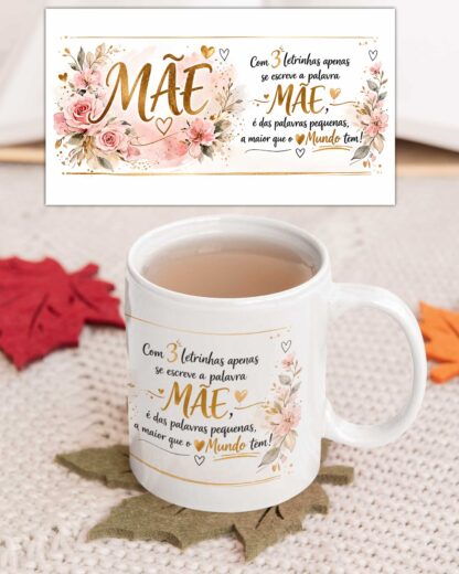 A Caneca de cerâmica personalizada “Com 3 letrinhas apenas se escreve a palavra Mãe, é das palavras pequenas a maior que o Mundo tem!” Ideal para oferecer no Dia da Mãe, aniversário ou noutra época especial.