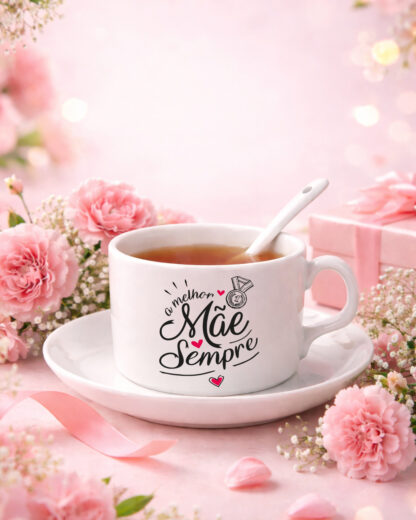 Surpreenda a sua Mãe com uma chávena de cerâmica de 180ml, acompanhada de um elegante pires, cuidadosamente personalizada com a frase “A melhor Mãe de Sempre”. Este é mais do que um objeto, é um gesto de carinho e reconhecimento pela importância dela na sua vida. Fabricada em cerâmica de alta qualidade, esta chávena combina durabilidade e estilo. Perfeita para o chá da tarde ou um café especial, ela é tão prática quanto bonita, proporcionando um toque de sofisticação ao dia a dia. Ideal para oferecer no Dia da Mãe, em aniversários ou até mesmo no Natal. Este presente é ideal para celebrar momentos únicos e criar memórias especiais. Demonstre todo o amor e gratidão com um presente que é verdadeiramente personalizado.