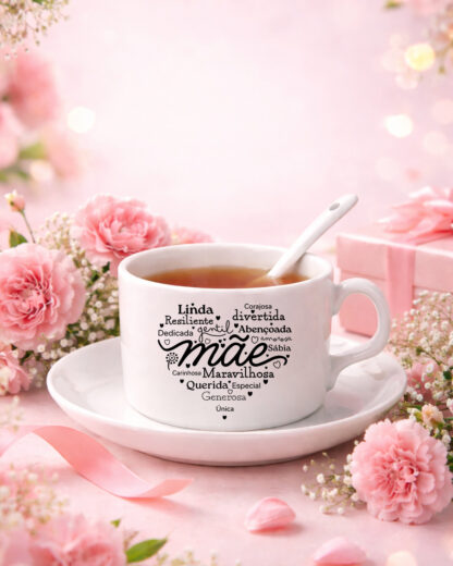 Surpreenda a sua Mãe com uma chávena de cerâmica de 180ml, acompanhada de um elegante pires, cuidadosamente personalizada com a frase “As qualidades da Mãe”. Este é mais do que um objeto, é um gesto de carinho e reconhecimento pela importância dela na sua vida. Fabricada em cerâmica de alta qualidade, esta chávena combina durabilidade e estilo. Perfeita para o chá da tarde ou um café especial, ela é tão prática quanto bonita, proporcionando um toque de sofisticação ao dia a dia. Ideal para oferecer no Dia da Mãe, em aniversários ou até mesmo no Natal. Este presente é ideal para celebrar momentos únicos e criar memórias especiais. Demonstre todo o amor e gratidão com um presente que é verdadeiramente personalizado.