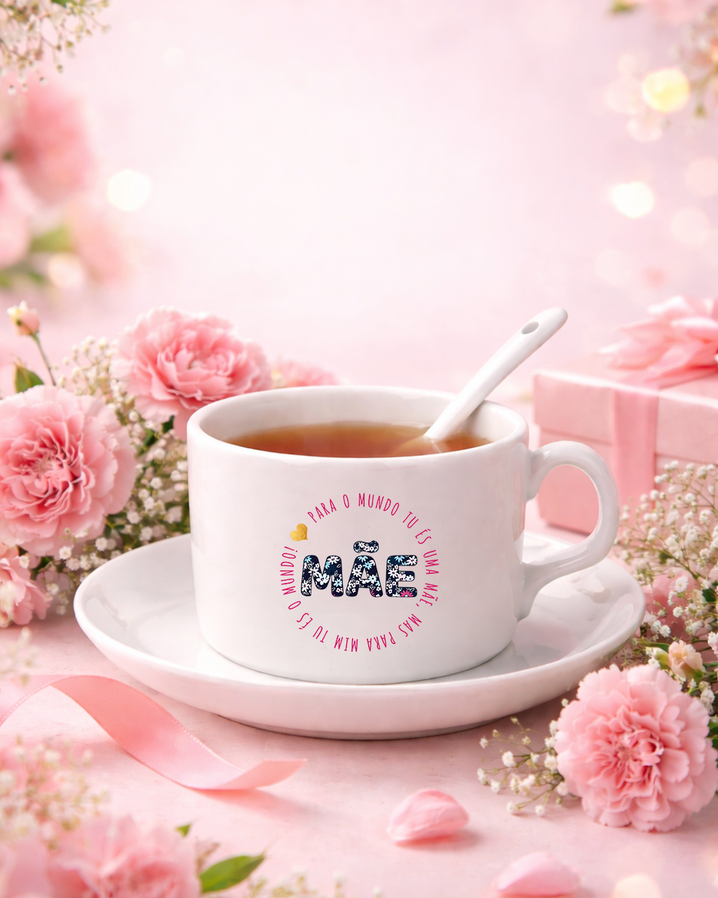 Surpreenda a sua Mãe com uma chávena de cerâmica de 180ml, acompanhada de um elegante pires, cuidadosamente personalizada com a frase “Para o Mundo tu és uma Mãe, mas para mim tu és o Mundo!” Este é mais do que um objeto, é um gesto de carinho e reconhecimento pela importância dela na sua vida. Fabricada em cerâmica de alta qualidade, esta chávena combina durabilidade e estilo. Perfeita para o chá da tarde ou um café especial, ela é tão prática quanto bonita, proporcionando um toque de sofisticação ao dia a dia. Ideal para oferecer no Dia da Mãe, em aniversários ou até mesmo no Natal. Este presente é ideal para celebrar momentos únicos e criar memórias especiais. Demonstre todo o amor e gratidão com um presente que é verdadeiramente personalizado.