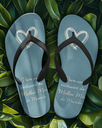 Surpreenda a sua Mãe com uns chinelos de praia personalizados estilo havaianas. Um presente que une beleza, conforto e originalidade. Criado para ocasiões especiais como o Dia da Mãe, aniversário, Natal, ou qualquer outra celebração, este produto é uma expressão genuína de carinho. Estes chinelos destacam-se pelo seu estilo elegante e pela personalização com a frase “Para uso exclusivo da Melhor Mãe do Mundo”, tornando-os únicos e cheios de significado. Cada detalhe foi pensado para homenagear quem faz da nossa vida um lugar de conforto e amor. Além do seu apelo emocional, estes chinelos proporcionam extremo conforto para uso diário ou momentos de relaxamento na praia. A combinação entre estilo e funcionalidade faz deles uma escolha indispensável.