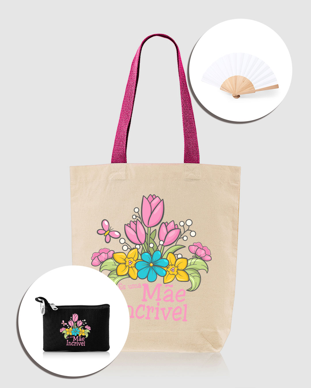 És uma Mãe incrivel – Conjunto Saco de algodão + Porta moedas e Leque