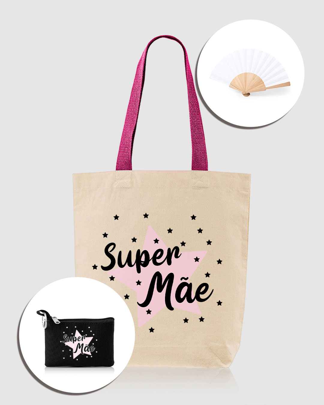*SUPER MÃE- Conjunto Saco de algodão + Porta moedas e Leque
