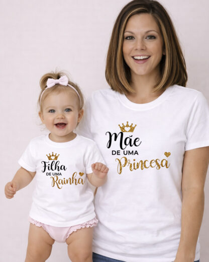 Conjunto de 2 T-Shirts Filha de uma Rainha e Mãe de uma Princesa