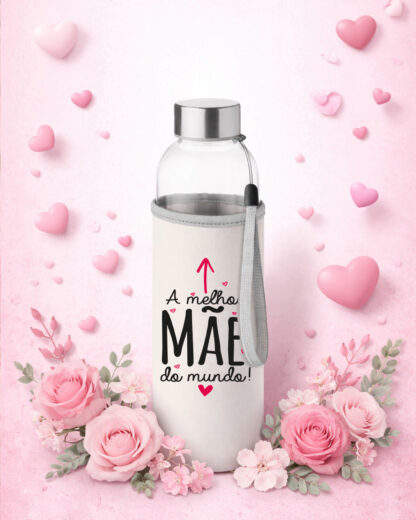 Surpreenda alguém especial com esta garrafa de vidro com manga em neoprene personalizada com a frase “A Melhor Mãe do Mundo”. Cada garrafa traz frases e desenhos temáticos que homenageiam as mães de forma única e carinhosa, conferindo um toque especial ao dia a dia. Além de elegante, é perfeita para transportar e consumir água com conforto e segurança. A manga em neoprene protege a garrafa e mantém a temperatura, combinando com o design exclusivo para um uso prático e elegante. Um excelente presente para o Dia da Mãe, aniversários, Natal ou qualquer outra ocasião especial, esta garrafa é um presente que emociona. Personalizável e significativa, ela vai transformar qualquer momento em uma lembrança duradoura.