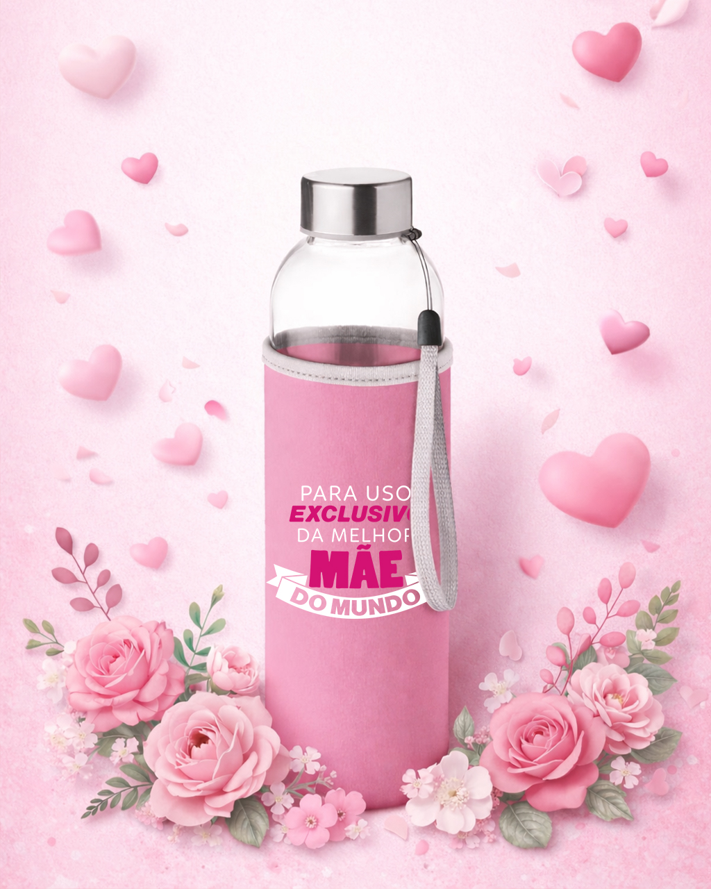 Surpreenda alguém especial com esta garrafa de vidro com manga em neoprene personalizada com a frase “Para uso exclusivo da melhor Mãe do Mundo”. Cada garrafa traz frases e desenhos temáticos que homenageiam as mães de forma única e carinhosa, conferindo um toque especial ao dia a dia. Além de elegante, é perfeita para transportar e consumir água com conforto e segurança. A manga em neoprene protege a garrafa e mantém a temperatura, combinando com o design exclusivo para um uso prático e elegante. Um excelente presente para o Dia da Mãe, aniversários, Natal ou qualquer outra ocasião especial, esta garrafa é um presente que emociona. Personalizável e significativa, ela vai transformar qualquer momento em uma lembrança duradoura.