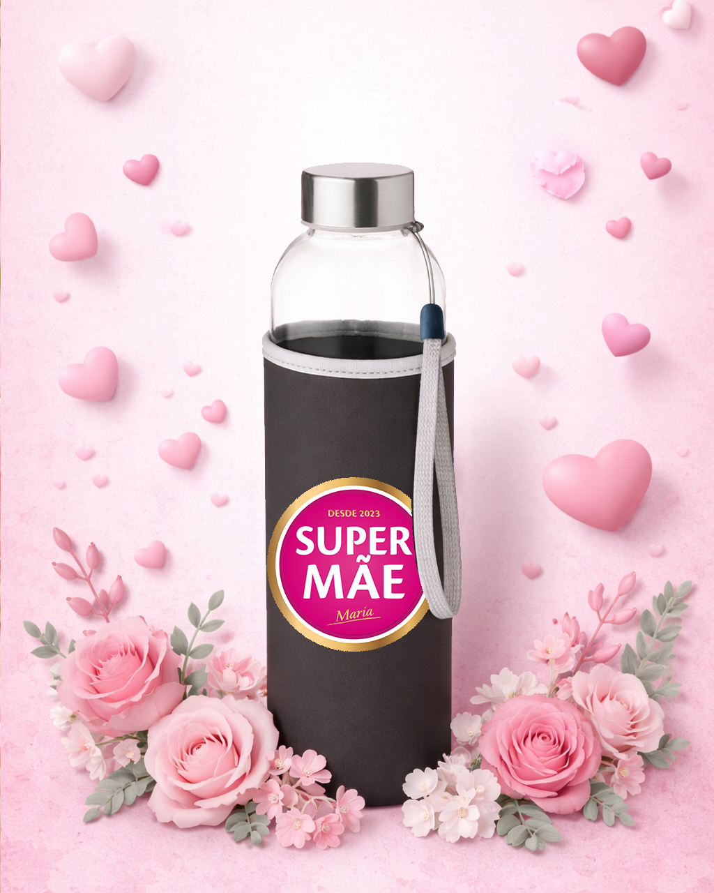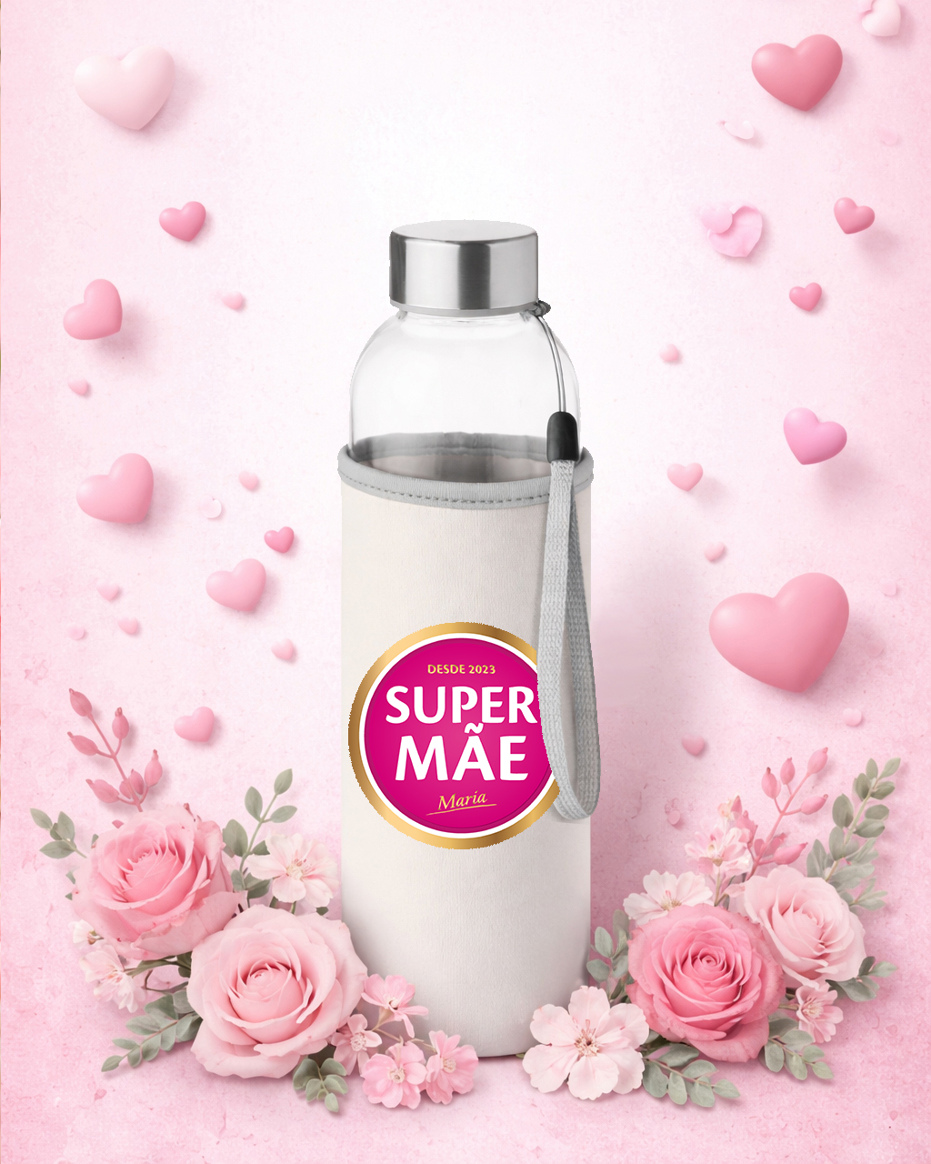 Surpreenda alguém especial com esta garrafa de vidro com manga em neoprene personalizada com a frase “Super Mãe”, baseada na icónica cerveja portuguesa “Super Bock”. Cada garrafa traz frases e desenhos temáticos que homenageiam as mães de forma única e carinhosa, conferindo um toque especial ao dia a dia. Além de elegante, é perfeita para transportar e consumir água com conforto e segurança. A manga em neoprene protege a garrafa e mantém a temperatura, combinando com o design exclusivo para um uso prático e elegante. Um excelente presente para o Dia da Mãe, aniversários, Natal ou qualquer outra ocasião especial, esta garrafa é um presente que emociona. Personalizável e significativa, ela vai transformar qualquer momento em uma lembrança duradoura.
