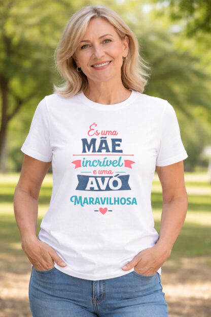 Surpreenda no Dia da Mãe e Dia dos Avós com uma t-shirt personalizada, feita com 100% algodão de alta qualidade. O tecido suave e durável proporciona máximo conforto, sendo perfeito para uso diário ou ocasiões especiais. Estas t-shirts trazem a mensagem única: “És uma Mãe Incrível e uma Avó Maravilhosa”, tornando-as o presente ideal para mães e avós celebrarem esta data especial. O design elegante e personalizado cria uma lembrança emocional que será apreciada por anos. Torne o Dia da Mãe e Dia dos Avós inesquecível com um presente cheio de significado. Estas t-shirts combinam humor, estilo, emoção e praticidade, mostrando que o quanto se importa com os pequenos detalhes que fazem grande diferença.