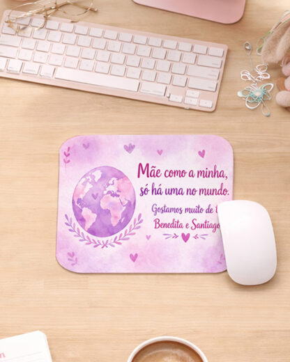 Surpreenda sua mãe com este tapete de rato personalizado, um presente criativo e funcional que celebra todo o carinho e dedicação dela. Fabricado com materiais de alta qualidade, este tapete traz conforto e praticidade ao dia a dia, além da mensagem especial: “Mãe como a minha só há uma no Mundo! Gostamos muito de ti” Medindo 20,9cm x 18,90cm x 0,3cm, este tapete de rato oferece o equilíbrio perfeito entre tamanho compacto e área funcional para o uso. Este design é perfeito para mesas de trabalho ou estudo, possibilitando um uso confortável e elegante. Ideal para oferecer no Dia da Mãe, aniversário, Natal ou qualquer outra data especial, este tapete de rato é uma demonstração do quanto valoriza a sua mãe. Torne o momento ainda mais emocional com a mensagem carinhosa que ela irá ver todos os dias na sua secretária.