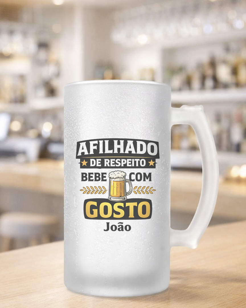 Surpreenda o seu Afilhado com esta elegante caneca de cerveja feita de vidro fosco, que traz a frase especial personalizada: “Afilhado com respeito bebe com gosto“. Um presente perfeito para demonstrar carinho e gratidão em grandes ocasiões como Páscoa, Domingo de Ramos ou aniversários. Design Exclusivo para Momentos Únicos o acabamento em vidro fosco e uma mensagem que aquece o coração, esta caneca combina funcionalidade e estilo. Ela é ideal para tornar cada brinde ainda mais especial e reforçar a conexão com aqueles que desempenham um papel tão importante em nossas vidas.