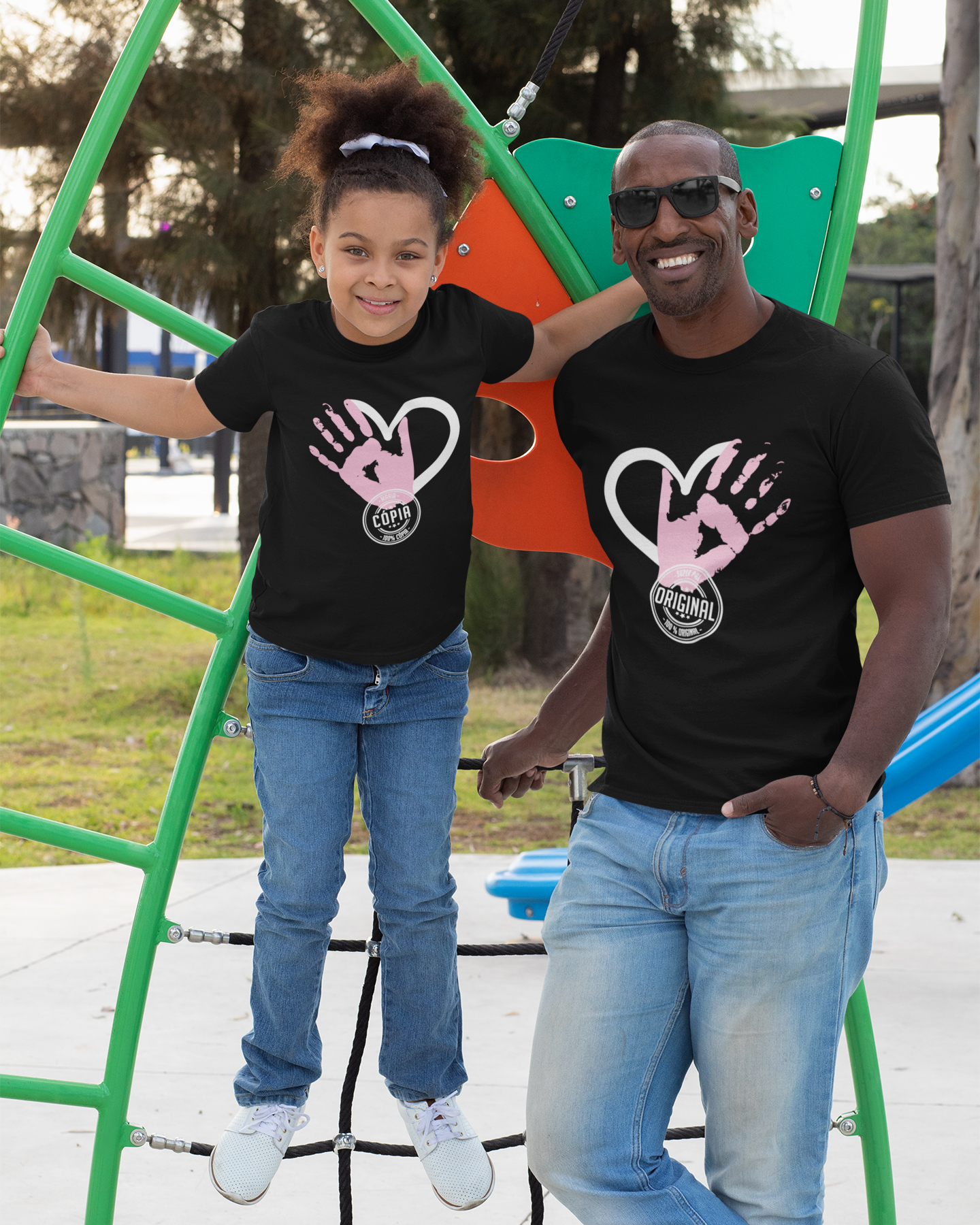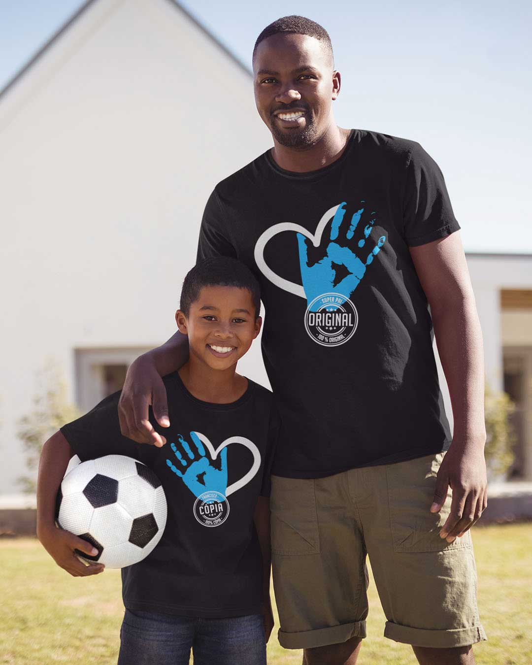 A surpresa ideal para o Dia do Pai, o nosso exclusivo conjunto de t-shirts personalizadas “Pai Original e Filho Cópia”.