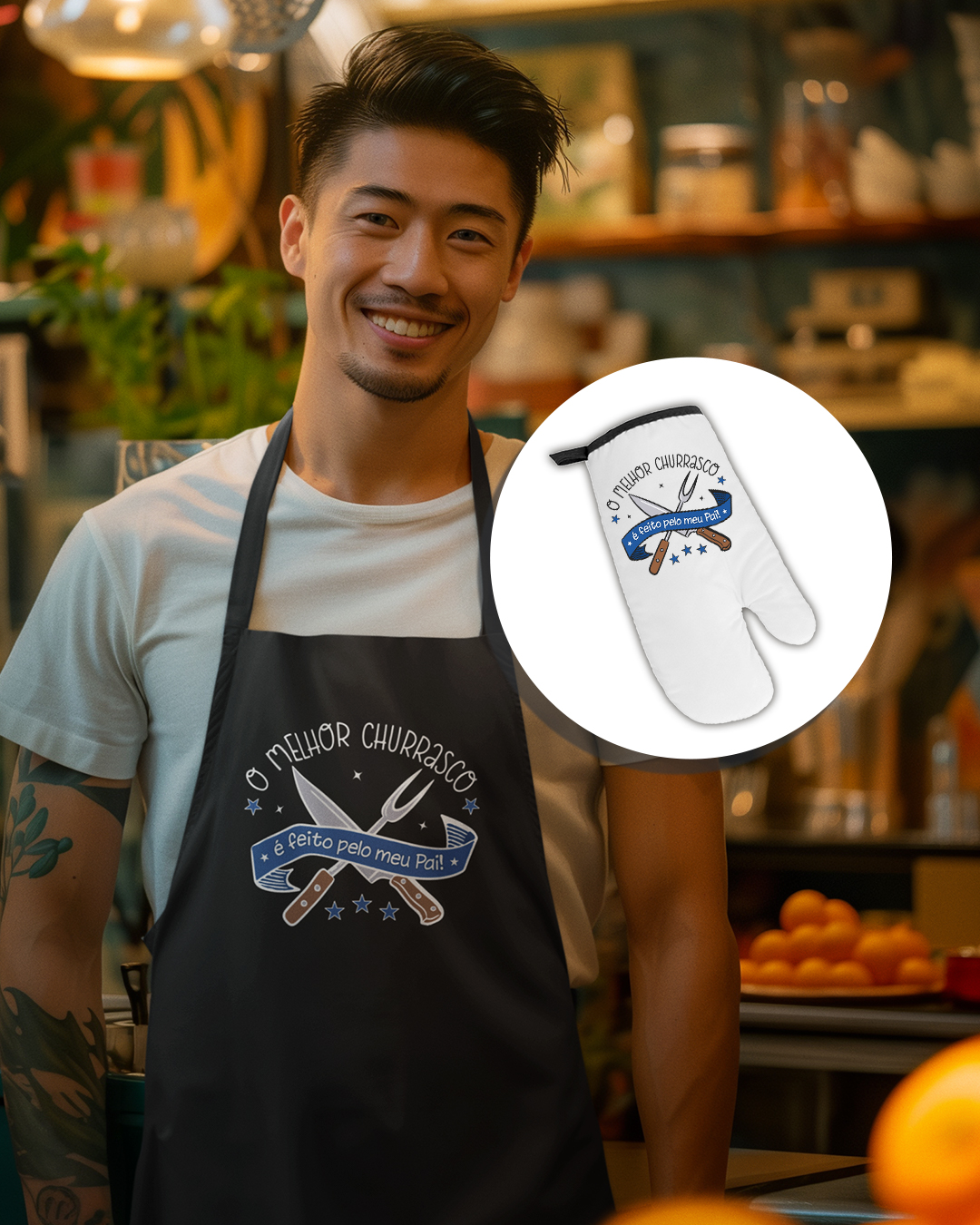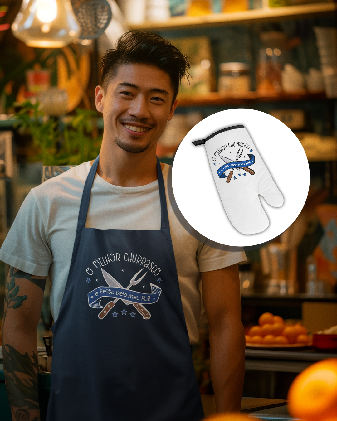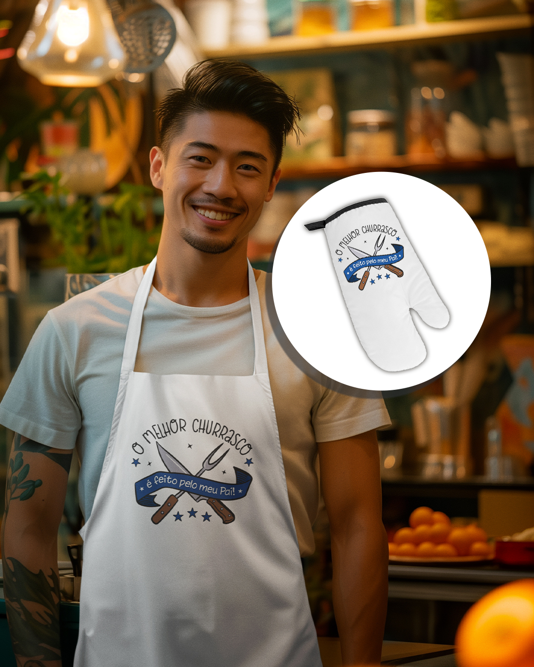 O melhor Churrasco – Conjunto Avental e Luva de forno