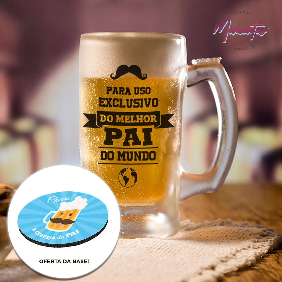Para uso exclusivo do mehor Pai do Mundo – Caneca de Cerveja de Vidro com oferta de base