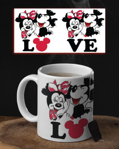 Caneca em cerâmica de 350ml, Personalizada com LOVE MINNIE E MICKEY