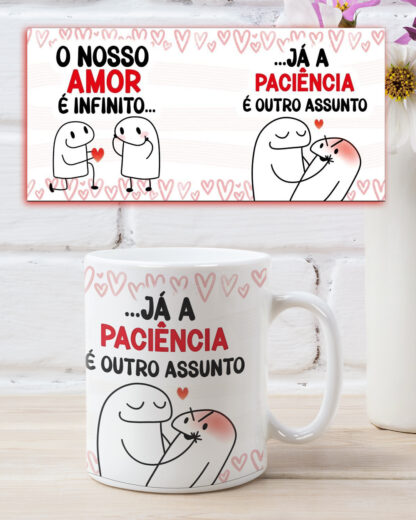 Caneca em cerâmica de 350ml, Personalizada com O nosso Amor é infinito… já a paciência é outro assunto!