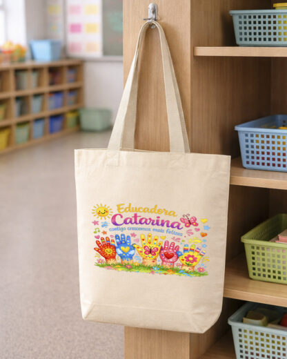 E porque cada etapa merece ser celebrada, as tote bags em algodão crú, personalizadas com a frase “Educadora, contigo crescemos mais felizes!”, para os Professores de Finalistas são ideais para as festas de final de ano, lembranças de Natal ou de Páscoa, tanto para Professores, Educadores, Auxiliares de ensino Pré-Escolar como de ensino Primário, personalizadas com desenho de professor e crianças. Um dos momentos mais ternurentos da Infância devem ser celebrados, de forma a mais tarde serem lembranças de um futuro adulto feliz.
