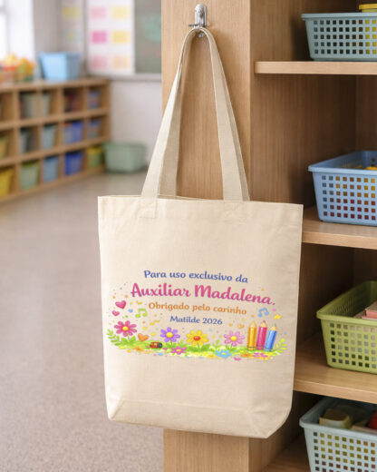E porque cada etapa merece ser celebrada, as tote bags em algodão crú, personalizadas com a frase “Para uso exclusivo da Melhor Auxiliar, Obrigado pelo carinho!“, para os Professores de Finalistas são ideais para as festas de final de ano, lembranças de Natal ou de Páscoa, tanto para Professores, Educadores, Auxiliares de ensino Pré-Escolar como de ensino Primário, personalizadas com desenho de professor e crianças. Um dos momentos mais ternurentos da Infância devem ser celebrados, de forma a mais tarde serem lembranças de um futuro adulto feliz.