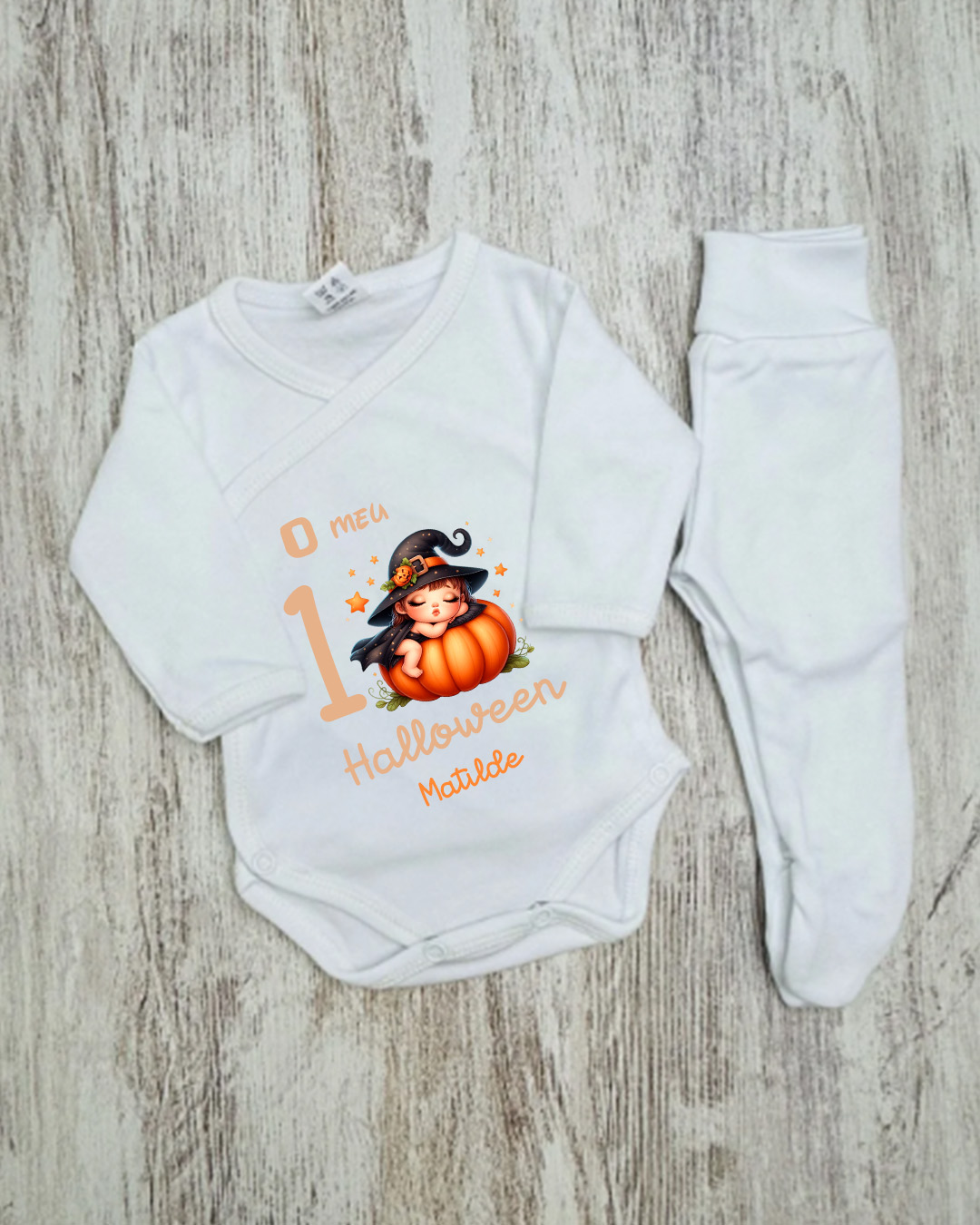 Body de manga comprida com calças branco, com ou sem carda (100% algodão)