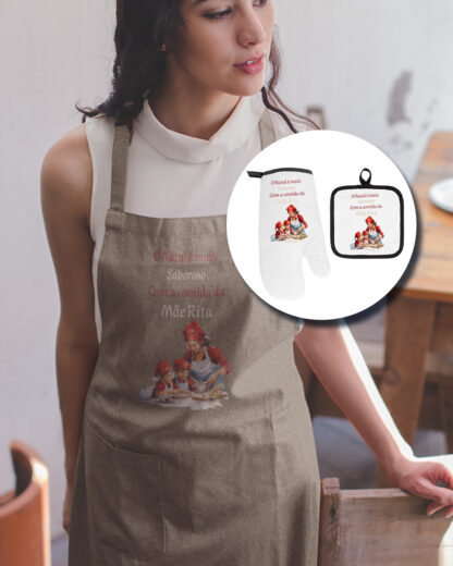Conjunto Avental com Luva e Pega de Forno Bege