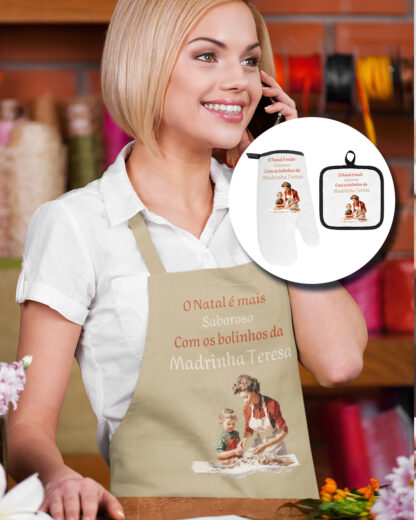 Conjunto Avental com Luva e Pega de Forno Bege