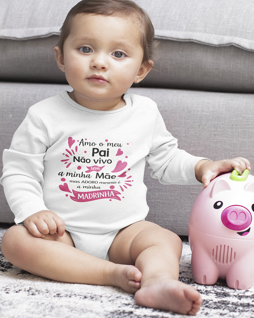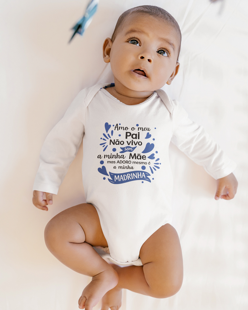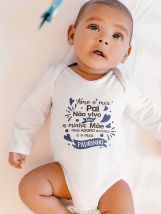 Body de manga comprida para bebé, confortável e suave ao toque, perfeito para celebrar um momento muito especial: A Páscoa do bebé. Com a frase cheia de humor “Amo o meu Pai, não vivo sem a minha Mãe, mas ADORO mesmo é a minha Madrinha”, este body é ideal para tornar esta data ainda mais memorável. Perfeito para usar nas celebrações em família, no Dia de Ramos, em sessões de fotos ou simplesmente para guardar como recordação deste primeiro momento tão especial.