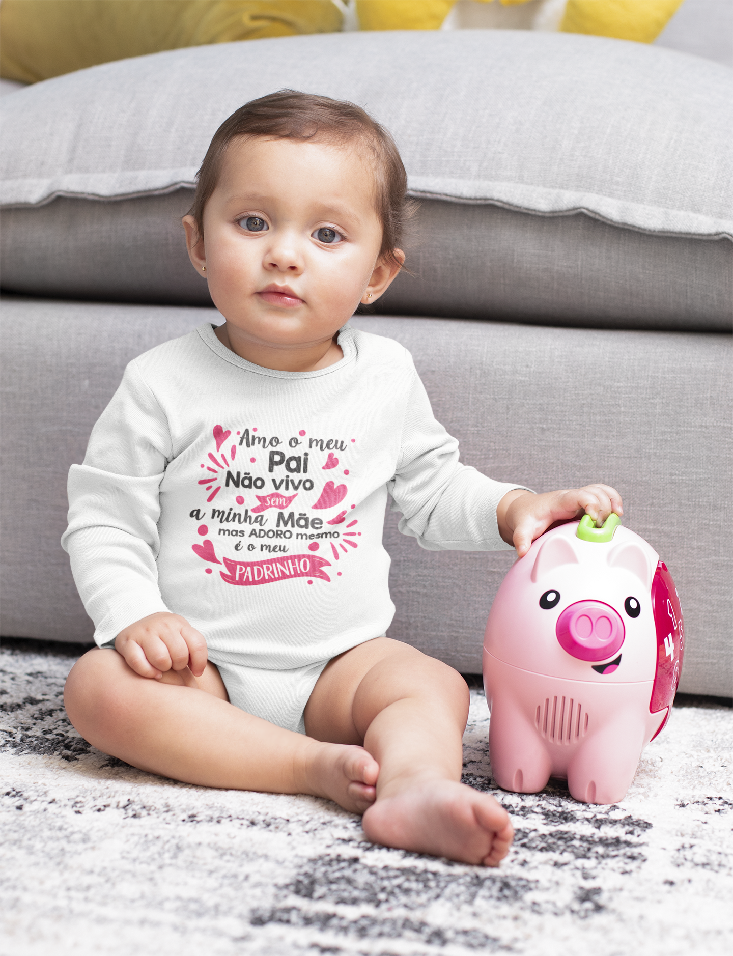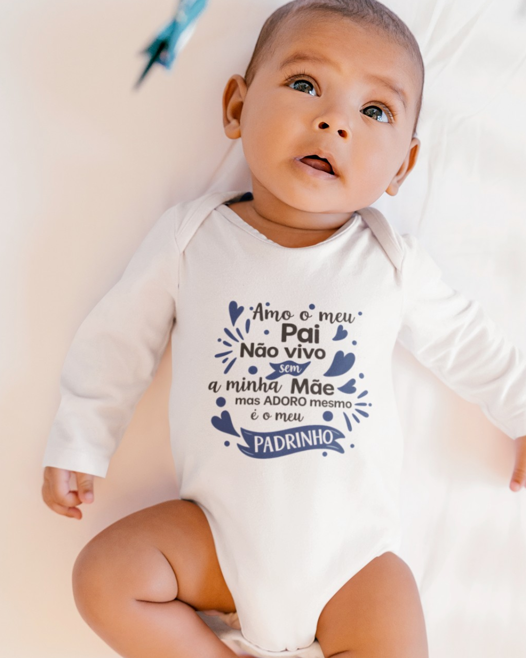 Body de manga comprida para bebé, confortável e suave ao toque, perfeito para celebrar um momento muito especial: A Páscoa do bebé. Com a frase cheia de humor “Amo o meu Pai, não vivo sem a minha Mãe, mas ADORO mesmo é o meu Padrinho”, este body é ideal para tornar esta data ainda mais memorável. Perfeito para usar nas celebrações em família, no Dia de Ramos, em sessões de fotos ou simplesmente para guardar como recordação deste primeiro momento tão especial.
