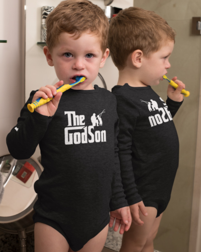 Body de manga comprida para bebé, confortável e suave ao toque, perfeito para celebrar um momento muito especial. Bodys personalizados baseados no filme “O Padrinho”, sendo um dos maiores sucessos para destacar a conexão perfeita entre Afilhado e Padrinho. Este body é ideal para tornar esta data ainda mais memorável. Perfeito para usar nas celebrações em família, no Dia de Ramos, em sessões de fotos ou simplesmente para guardar como recordação deste primeiro momento tão especial.