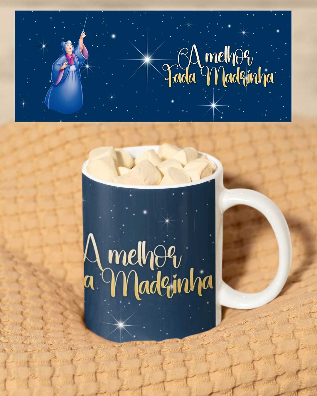 Caneca de cerâmica branca – Personalizada “A Melhor Fada Madrinha”