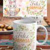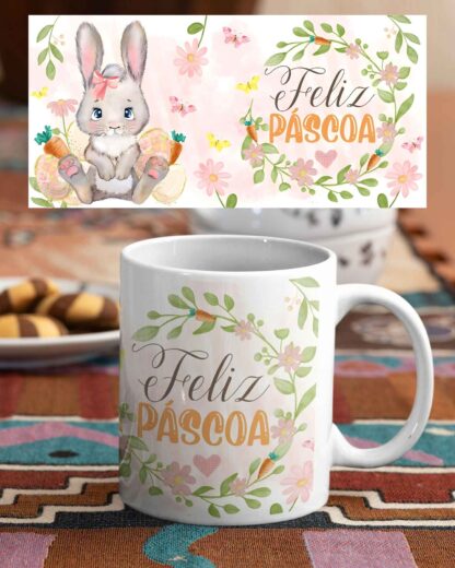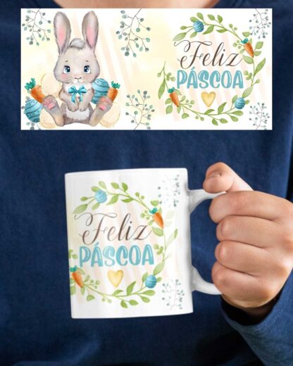 Caneca de cerâmica Personalizada “Feliz Páscoa coelho Rosa ou Coelho Azul”