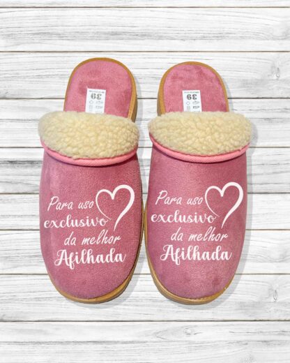 Surpreenda a sua Afilhada com os exclusivos Chinelos Serra da Estrela em cor de rosa, especialmente personalizados com a frase “Para uso da Melhor Afilhada”. Este presente especial é perfeito para proporcionar conforto e criar memórias inesquecíveis. Estes chinelos foram feitos pensando nas ocasiões mais especiais, como Páscoa, Natal, aniversários e outras datas comemorativas. A sua personalização única demonstra cuidado e afeto, tornando-o uma escolha ideal para quem deseja dar algo verdadeiramente significativo. O tom rosa suave e a mensagem carinhosa fazem desses chinelos mais do que um item comum. Eles combinam estilo, utilidade e uma dose de exclusividade que a sua afilhada irá adorar. Seja para relaxar em casa ou para usar no dia a dia, estes chinelos são um símbolo de carinho que ela vai apreciar.