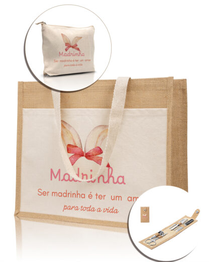 Surpreenda a sua Madrinha com o Conjunto personalizado. Este conjunto é cuidadosamente composto por uma mala, necessaire e um kit de manicure com a frase “Ser Madrinha é ter um amor para toda a vida”, reunindo utilidade e elegância em um único presente. Seja para o Domingo de Ramos, Páscoa, Natal, aniversários ou outras épocas especiais, este conjunto oferece uma combinação prática e sofisticada que encanta e valoriza a pessoa que recebe. Um presente pensado para deixar momentos especiais ainda mais marcantes. Este conjunto destaca-se pelo toque personalizado, tornando-o único e ainda mais especial para a Madrinha. Não é apenas um presente, mas uma forma de mostrar apreço e carinho em qualquer ocasião.