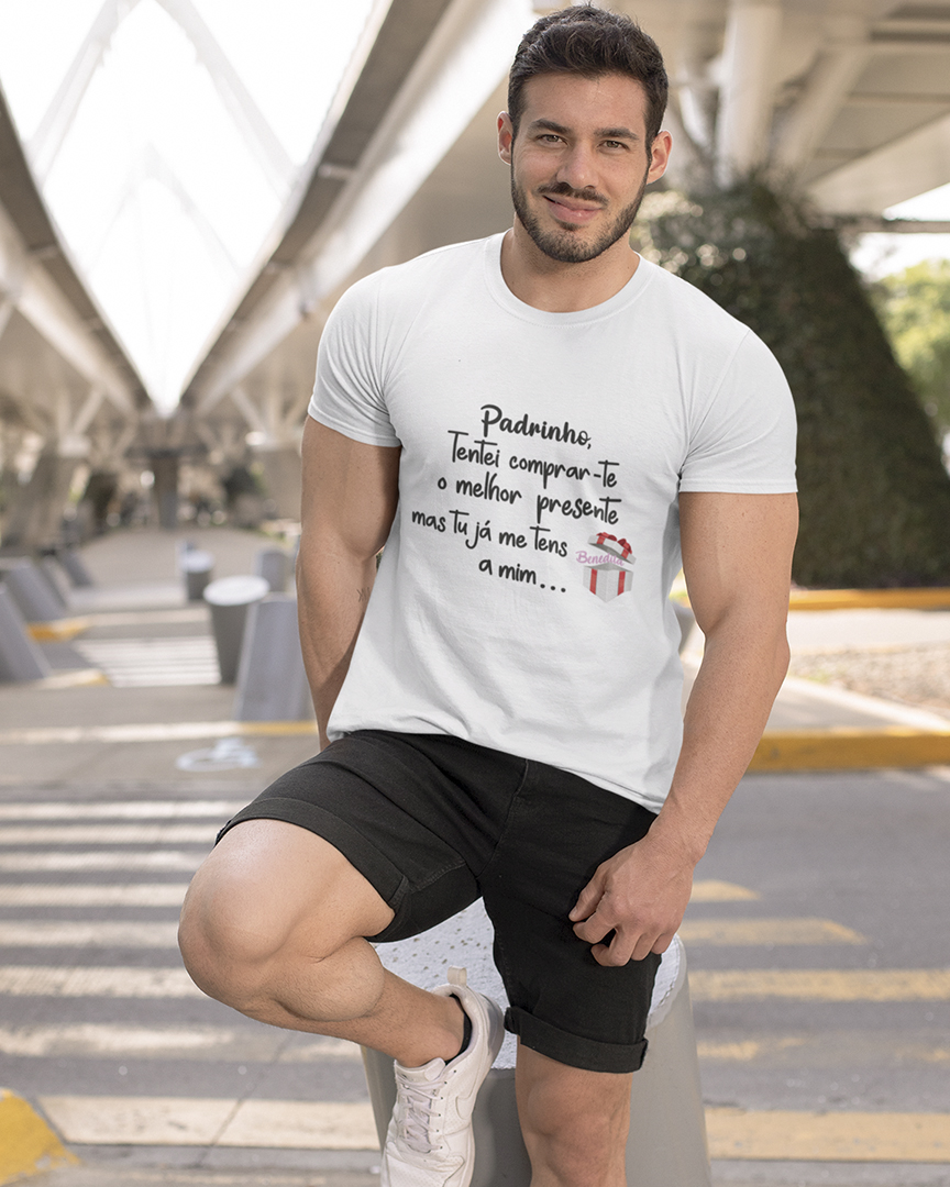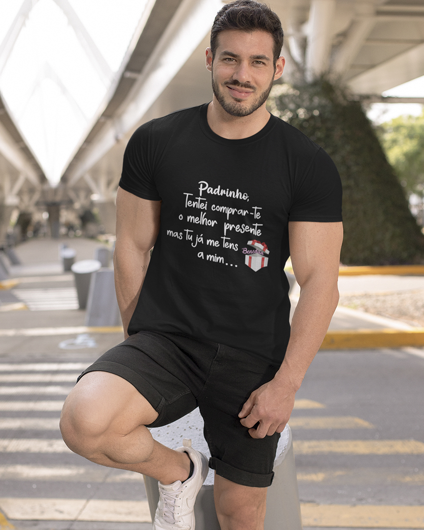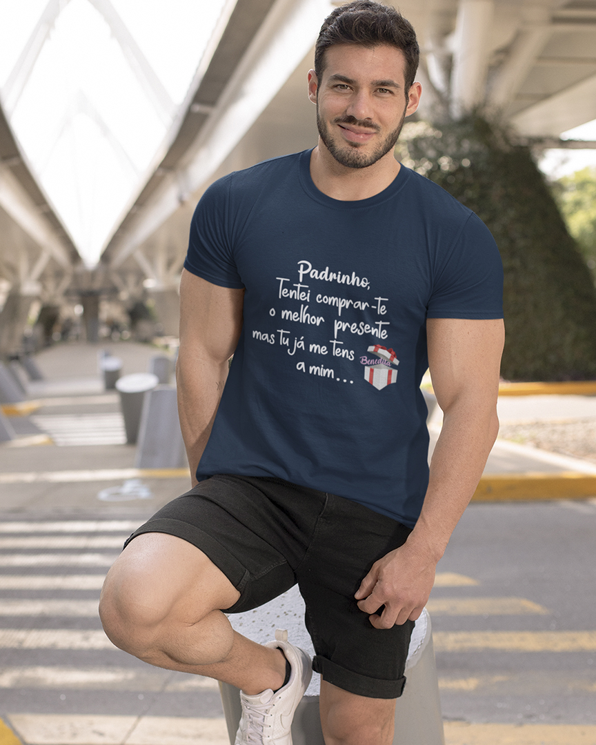 A t-shirt personalizada “Padrinho tentei comprar-te um presente mas já me tens a mim…” em branco, azul marinho e preto são a escolha perfeita para celebrar momentos especiais como a Páscoa, o Dia de Ramos e Aniversários com estilo e significado. Com um design inspirado num momento sem ideias para presentes, esta peça combina tradição com humor, tornando-se um símbolo único de carinho entre padrinhos e afilhados. Confeccionadas com materiais de alta qualidade, oferecem conforto, suavidade e um ajuste ideal para o dia-a-dia. Perfeita para oferecer como presente simbólico nestas ocasiões tão importantes, esta t-shirt é mais do que uma peça de roupa, é uma recordação afetiva que perdura no tempo.