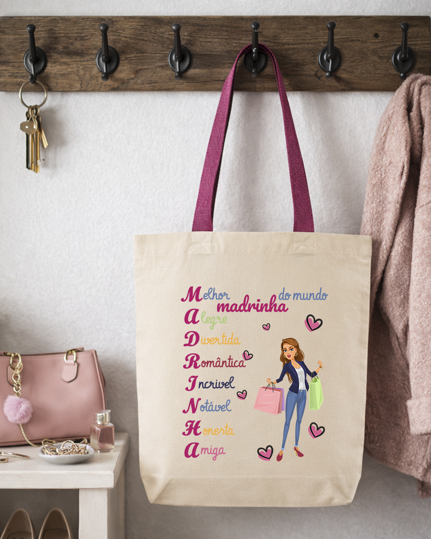 Surpreenda sua Madrinha com um presente personalizado que une elegância e significado. A nossa tote bag é 100% feita em algodão crú, resistente, garantindo um toque macio e durabilidade para o dia a dia.