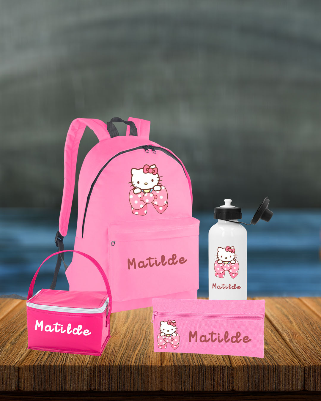 Conjunto Mochila, Lancheira, Estojo e Garrafa de Alumínio