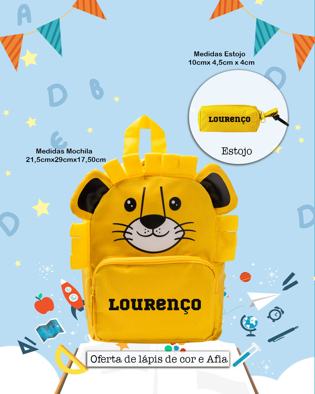 PRÉ-ESCOLAR E INFANTÁRIO – Conjuntos dos Animais – Mochila com estojo com oferta de lápis de cor